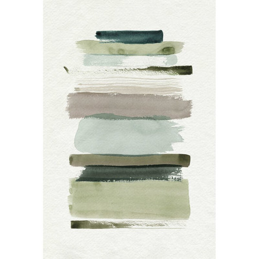 Abstract Contemporary Landscape Oil Painting in Earthy Greens and Blues