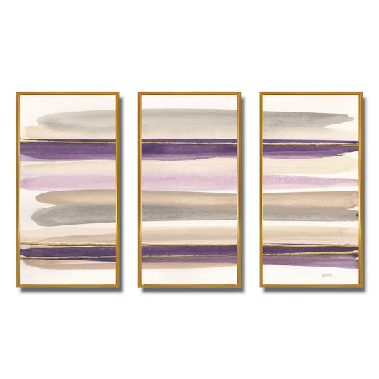 Elegant Purple and Gold Abstract Landscape Triptych Oil Painting Set