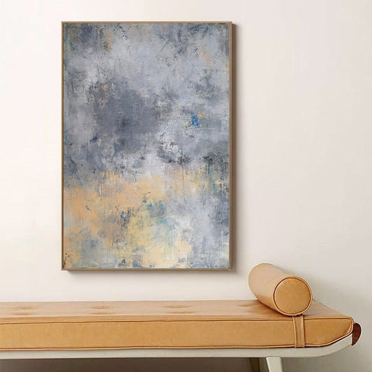Contemporary Grey and Yellow Abstract Oil Painting for Modern Home Decor