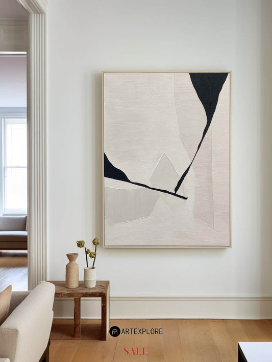 Contemporary Black and White Minimalist Abstract Oil Painting for Modern Decor