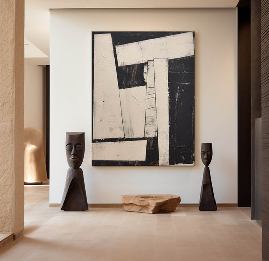 Contemporary Black and White Abstract Oil Painting for Modern Art Lovers