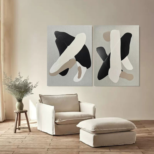 Contemporary Black and White Abstract Oil Painting Duo for Modern Decor