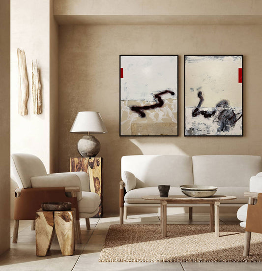 Contemporary Abstract Oil Paintings - Minimalist Wall Art Duo for Modern Decor