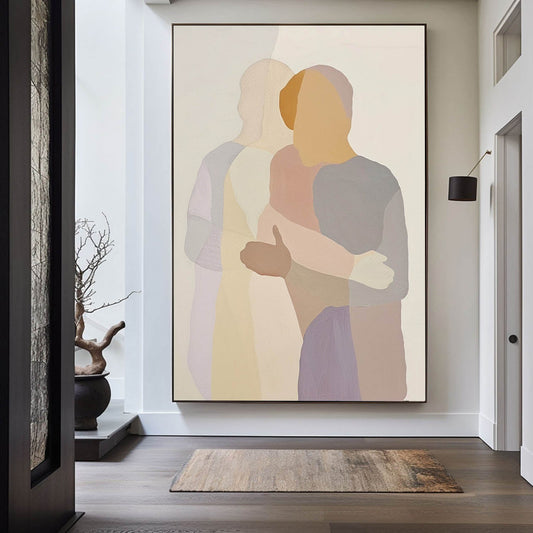Contemporary Abstract Portrait Art - Emotional Embrace in Oil Painting