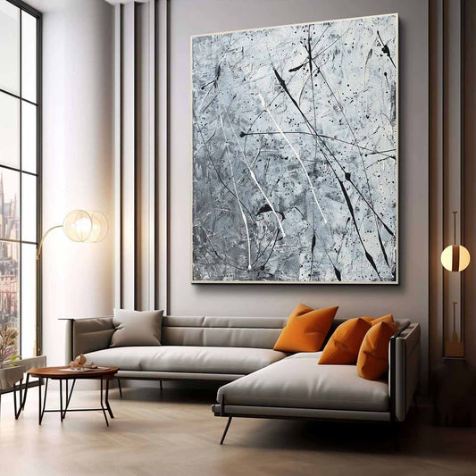 Contemporary Abstract Oil Painting in Black and White for Modern Decor