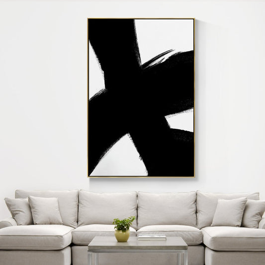 Contemporary Abstract Oil Painting with Bold Black and White Brushstrokes