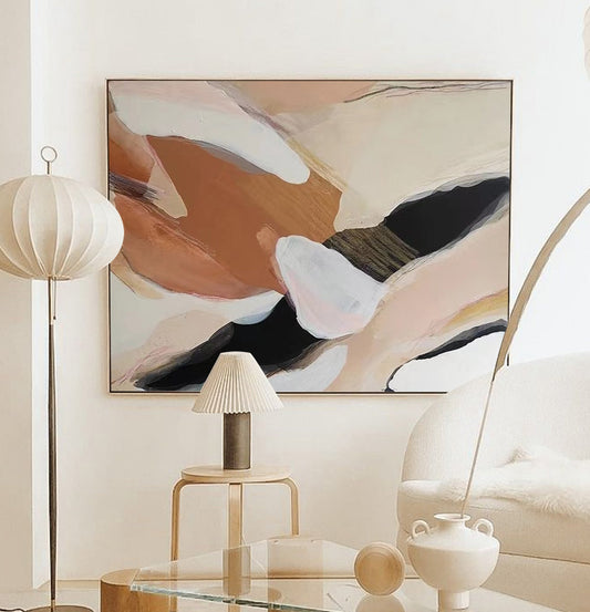 Contemporary Abstract Oil Painting in Soft Earth Tones for Modern Home Decor