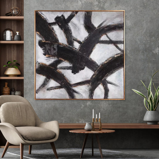 Contemporary Abstract Black and White Oil Painting for Modern Home Decor