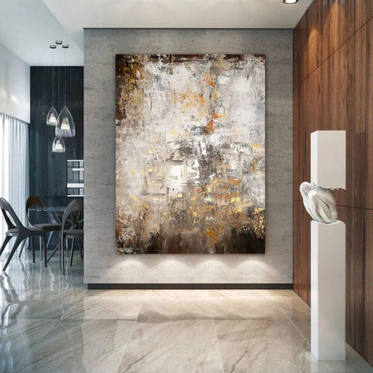 Abstract Gold and Gray Modern Oil Painting for Elegant Home Decor