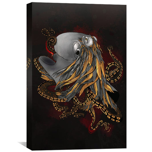 Abstract Feathered Octopus on Dark Background - Unique Oil Painting Art