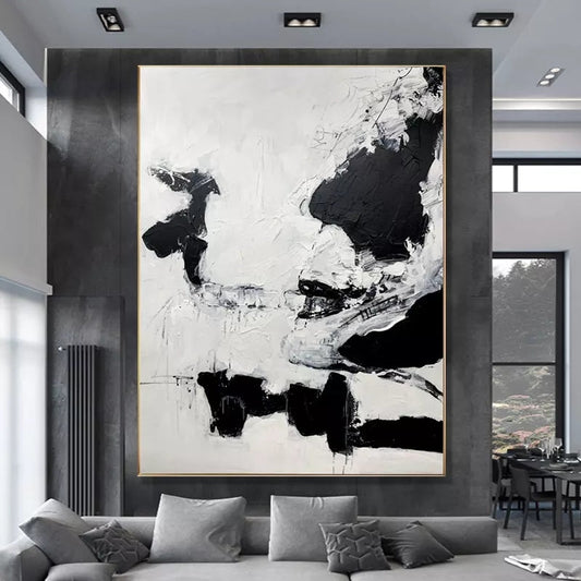 Abstract Black and White Oil Painting for Modern Home Decor and Art Enthusiasts