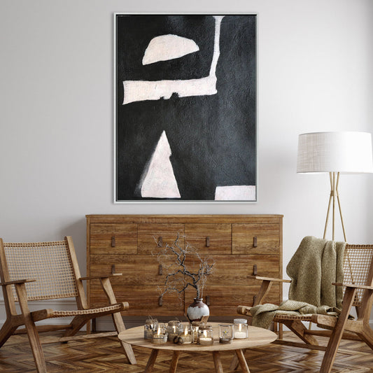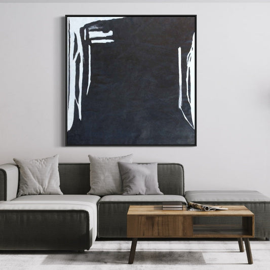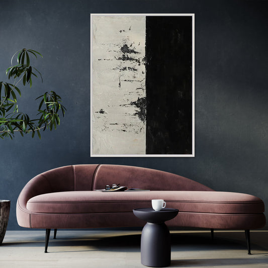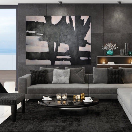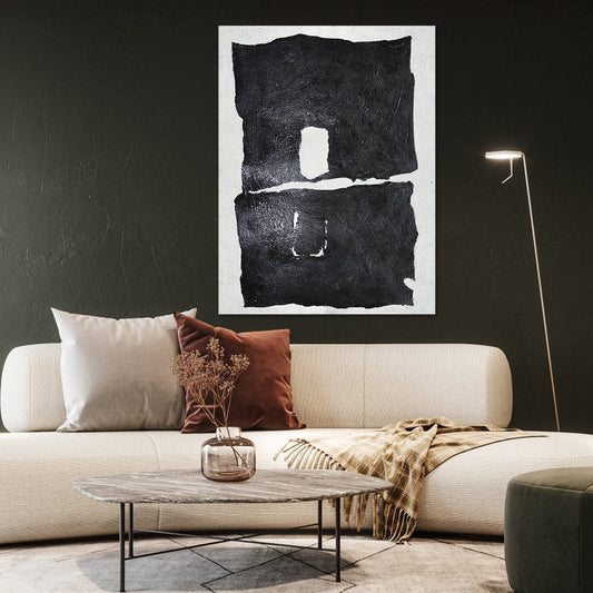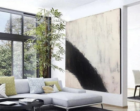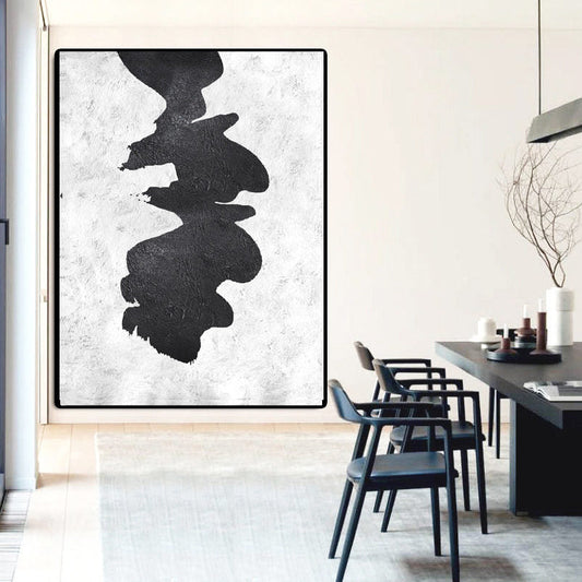 Abstract Black and White Oil Painting: Modern Minimalist Art for Contemporary Spaces