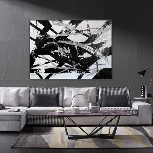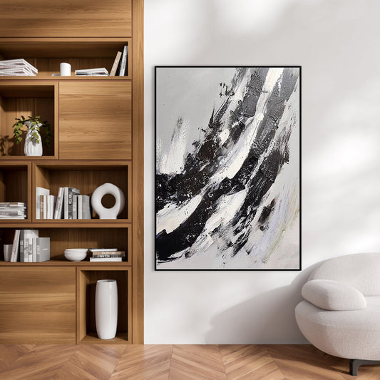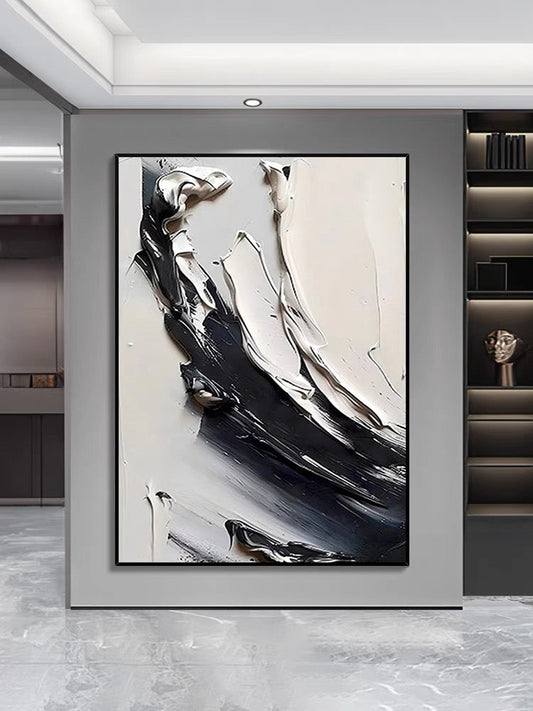 Abstract Black and White Oil Painting with Rich Textures for Modern Art Lovers