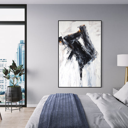 Abstract Black and White Oil Painting – Modern Home Decor Art
