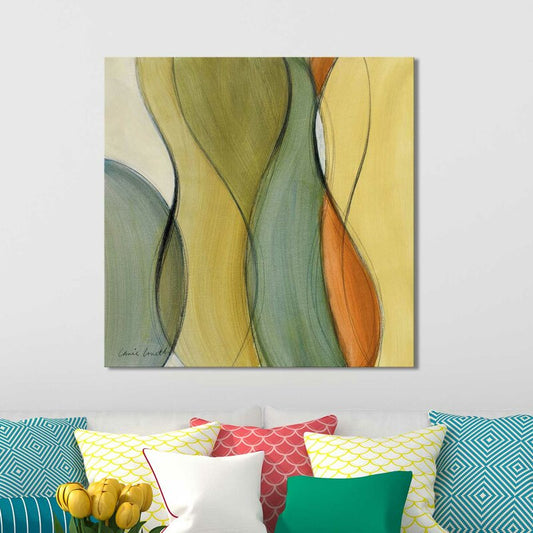 Abstract Oil Painting with Flowing Lines in Green and Orange Tones