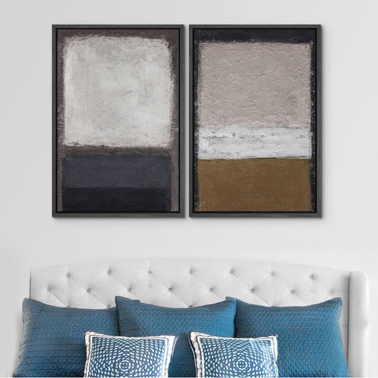 Contemporary Gray and Brown Abstract Geometric Oil Painting Set