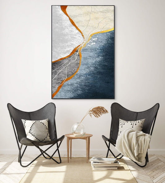Abstract Marble Granite Inspired Gold Accent Stone Oil Painting 444AN