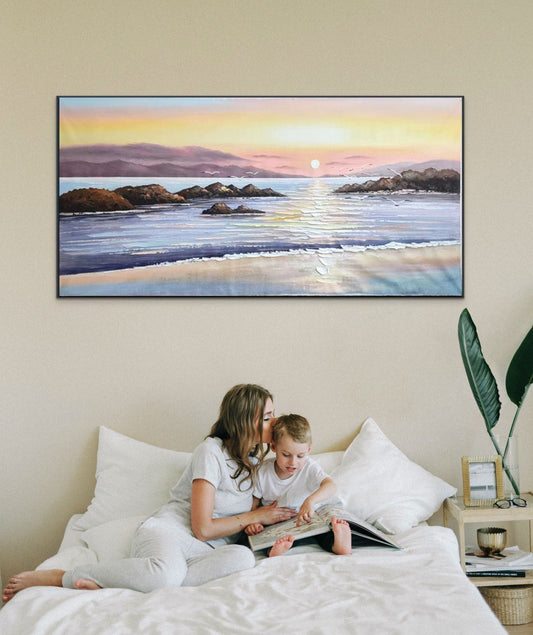 Coastal Waves Beach Sunset Tide Oil Painting 450AF