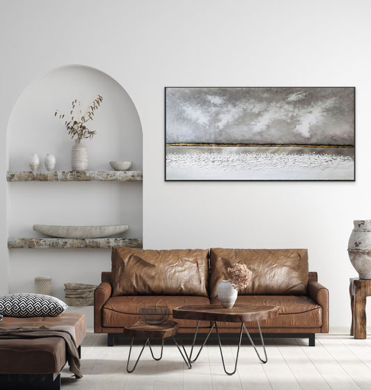 Sunset Ocean Bay Large Sky Landscape Oil Painting 443AF