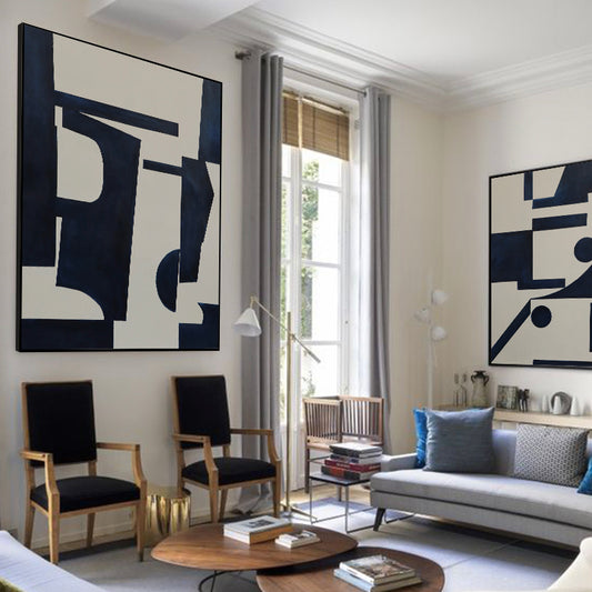 Abstract Layered Geometric Shapes Oil Painting 389LT