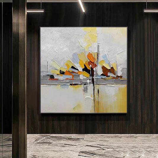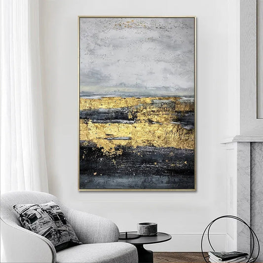Elegant Abstract Oil Painting with Golden Accents for Modern Home Decor