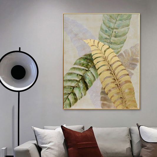 Elegant Golden Leaves: Nature-Inspired Oil Painting for Home Decor