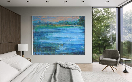 Serene Blue Horizon Abstract Oil Painting for Modern Home Decor