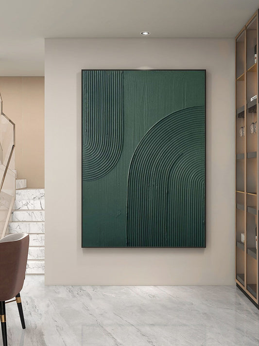 Textured Abstract Oil Painting in Rich Emerald Green for Modern Home Décor