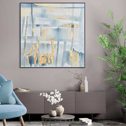 Tranquil Abstract Oil Painting with Golden Accents for Modern Home Decor