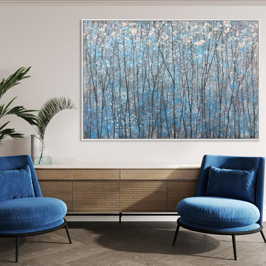 Tranquil Blue Forest: Calming Oil Painting for Modern Home Décor