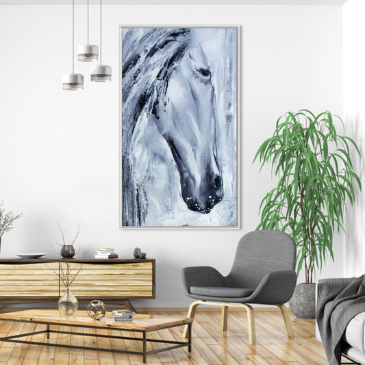 Majestic Grey Horse Oil Painting for Equine Art Lovers and Modern Decor