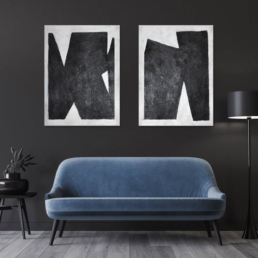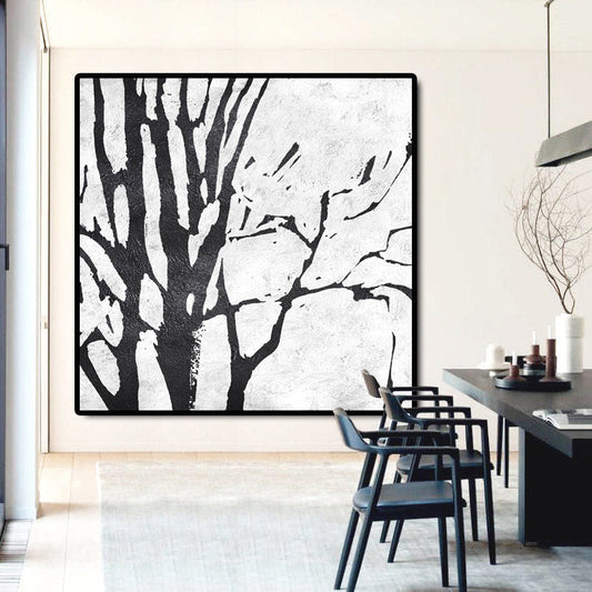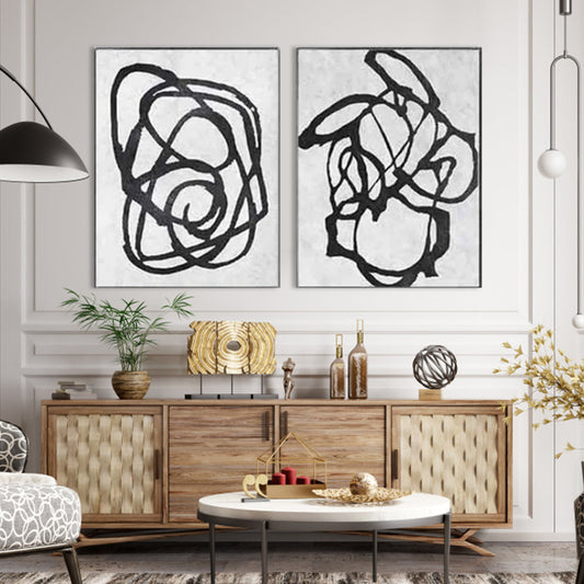 Abstract Black and White Oil Painting - Modern Wall Art for Contemporary Decor