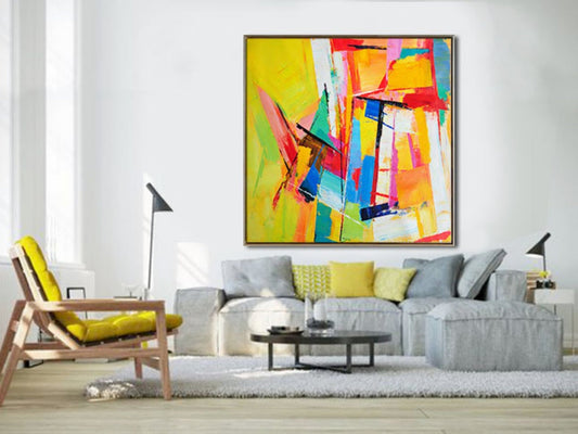 Vibrant Abstract Oil Painting in Bold Colors for Home Décor