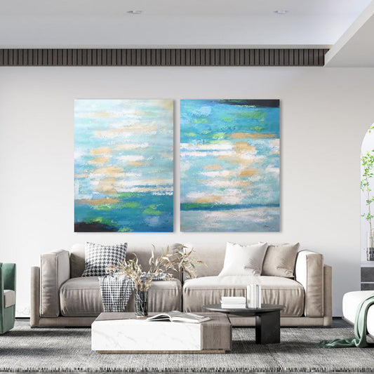 Serene Coastal Abstract Oil Painting for Tranquil Home Décor