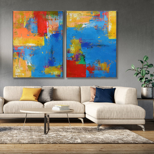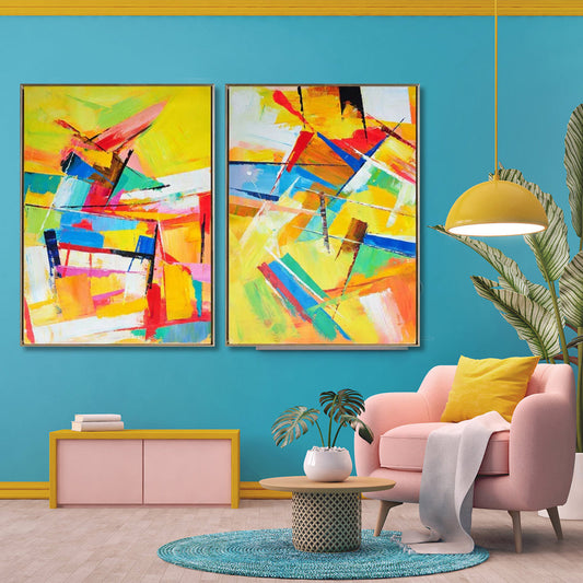 Vibrant Abstract Oil Painting Duo for Modern Home Decor and Art Lovers