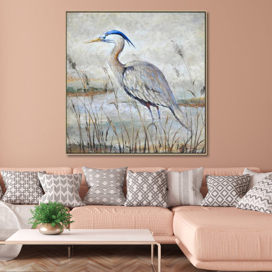 Elegant Heron in Tranquil Waters - Serene Landscape Oil Painting