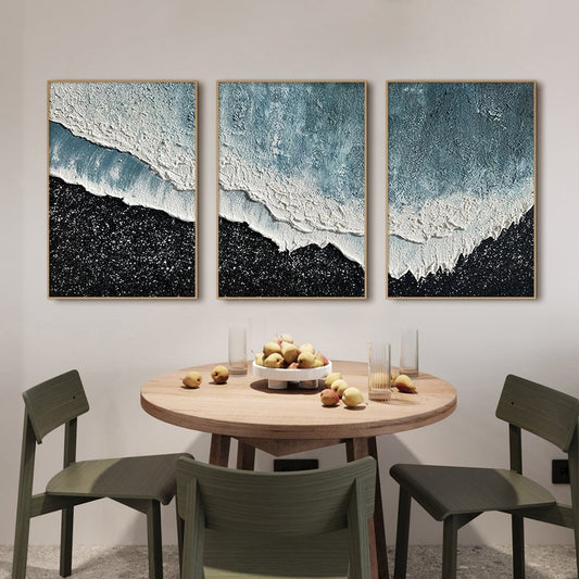 Serene Aegean Waves Triptych - Coastal Ocean Art for Home Decor
