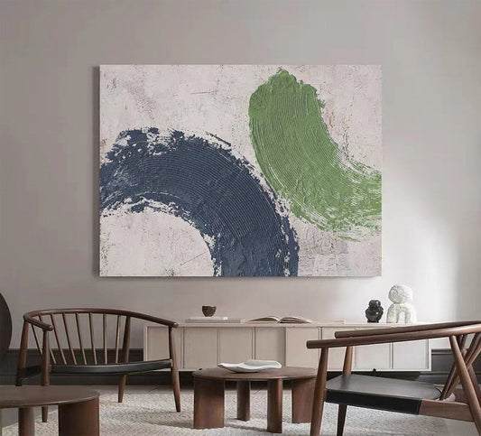 Modern Abstract Oil Painting in Bold Blue and Green Color Swirls for Contemporary Decor