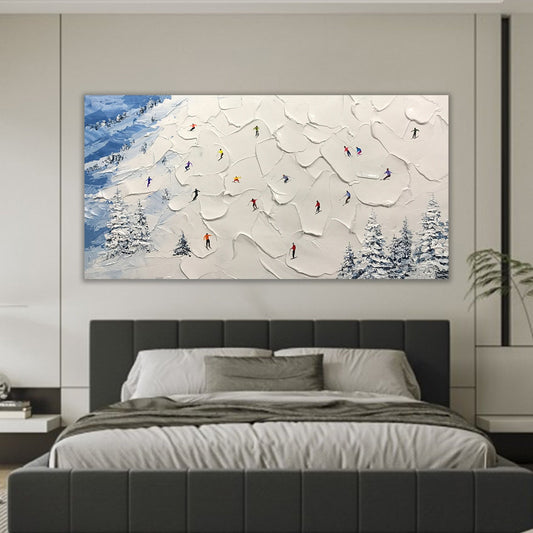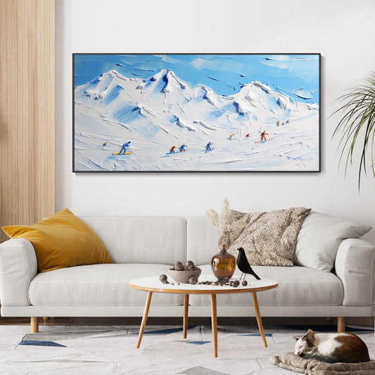 Serene Alpine Ski Scene Oil Painting for Winter Home Decor