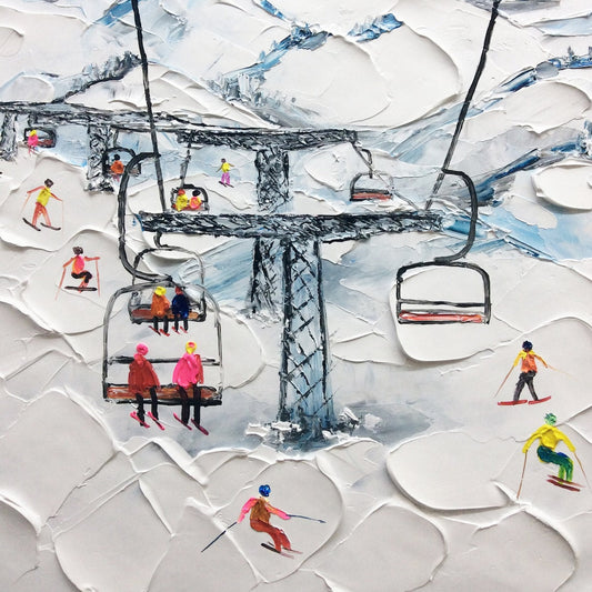 Vibrant Alpine Ski Adventure Oil Painting for Winter Decor