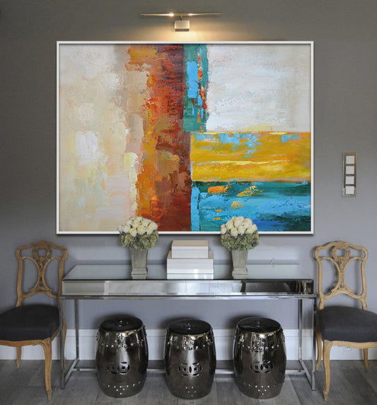 Vibrant Abstract Oil Painting with Bold Colors for Modern Home Décor