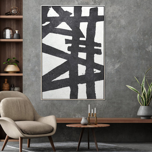 Modern Abstract Black and White Oil Painting for Contemporary Home Décor