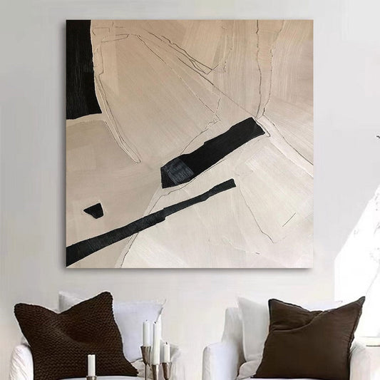 Minimalist Black and White Abstract Oil Painting for Contemporary Home Decor