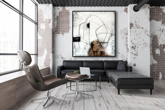 Modern Monochrome Abstract Oil Painting for Contemporary Home Decor