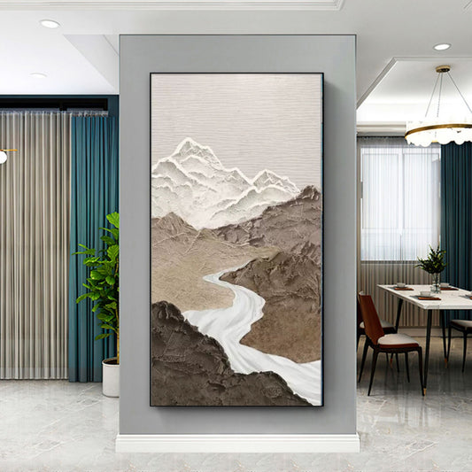 Serene Abstract Mountain Landscape with Flowing River Oil Painting