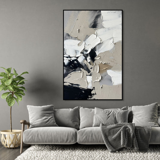 Modern Abstract Oil Painting in Elegant Black and White Tones