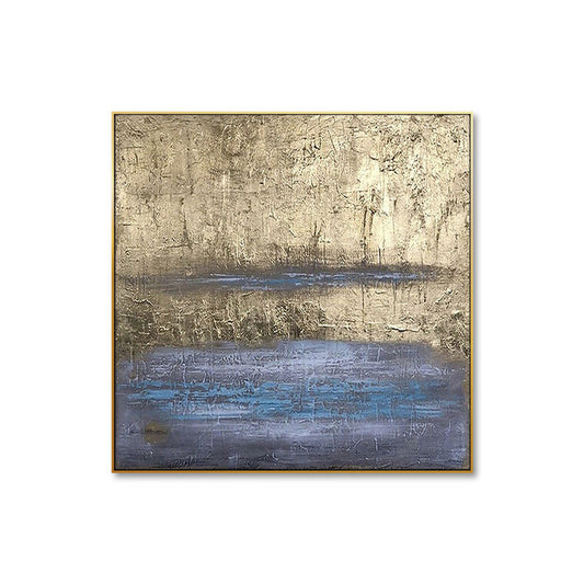 Elegant Abstract Oil Painting in Gold and Blue for Modern Home Decor