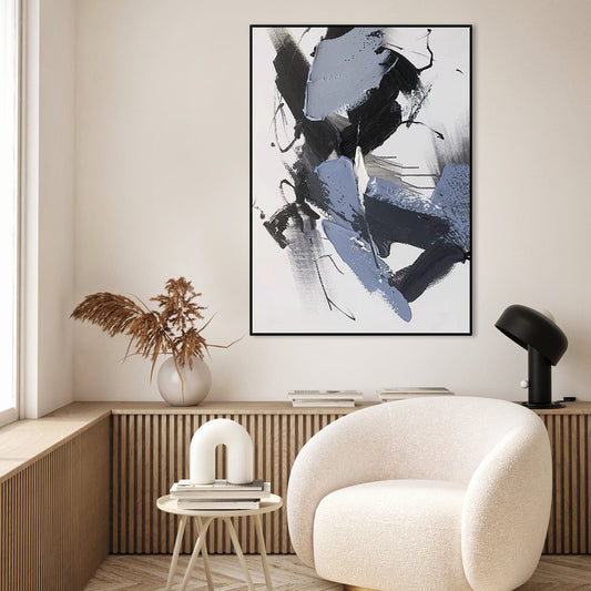 Contemporary Abstract Oil Painting in Blue and Black for Modern Home Decor