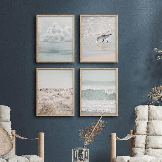 Serene Coastal Scene: Ocean, Beach, and Seagull Art Set