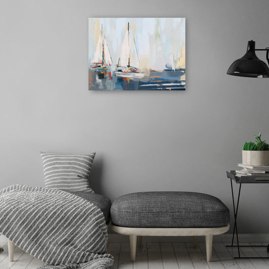 Serene Sailing Scene Oil Painting - Coastal Canvas Art for Nautical Home Decor